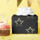 Metalliska silverstjärnor på svart presentpapper