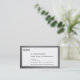 En sida tryckt med alla nödvändiga uppgifter som en visitkort bör innehålla, en sida tryckt med det stora firmanamnet. Diskret och ändå unik, tydlig i budskapet, ovanlig utan att vara spelad, tydlig och objektiv. För näringsidkare med stil, tydlig hållning och mycket information.
