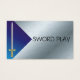 Blått och Silver-metallkort och medeltida ord med en mall för ett blått övertoningskort. Royal juveler och guld svärd passar för kung. Anpassade, teckensnitt, färg i bakgrunden och mer online.