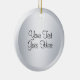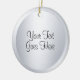 Handskriven skriptmall Faux Silver Metallic Search Elegant Circle Ceramic Ornament.