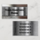 En metallyta i krom för rostfritt stålgrungelook är djärvt, unikt och för look 3d en stark visitkort. Snittmetall pläterar på bekläda av kortstativen ut nicely att visa av ditt företagsnamn eller ditt namn. Skräddarsy lätt med din egna information. Använd den perfekta stilsortsstilen av djärv svart bokstäver med skruvar i designen eller ändrar lätt stilsortsstilen. Den perfekta professionellen tittar kortet speciellt för industriella, konstruktions- och byggnadockupationar. Mer information kan vara pålagd baksidaen som väl på den samma metallbakgrunden. Utskrivavet på papper, inte faktisk metall. En stark visitkort som står ut från vila.