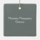 Kvadratisk keramisk ornament med en bild av Meteoras kloster. Metéora, bokstavligt talat "mitten i himlar", "suspenderad i luft" eller "i himlen ovan" - etymologiskt relaterad till meteorologi) är en av de mest spektakulära och unika sten-formationerna i världen. Omfattande monolitiska pelare och backe som stora rundade stenar dominerar området. Klostret är byggt på naturliga sandstenar i sten, på den nordvästra kanten av slätten i Thessalien nära Pineios-floden och Pindus-bergen i centrala Grekland. Metéora finns med på Unescos världsarvslista. Se hela Greklands förteckning över ornament i avsnittet HOME.