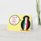 Ms. Penguin wears her vest of the green, white, and red flag of Mexico on this thank you card. Card is blank inside for your special message. Ms. Penguin got her Mexican flag vest on her vacation. You can change the background color to match your personal taste or party theme. Also, you can make Ms. Penguin say whatever you like in her talk bubble.