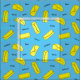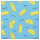 Colourful blue fabric patterned with burritos, fajitas and enchiladas.