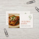 The terracotta red and sage green accents add cultural warmth, while the minimalist layout keeps your restaurant name and contact details crisp and professional. Perfect for chefs, taquerias, food trucks, and catering professionals looking to make a memorable first impression.