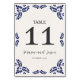 This Mexican Talavera Black Floral Minimalist Wedding Table Number design features a minimalist approach with delicate, symmetrical black floral motifs placed in each corner and along the edges. The small, leaf-like shapes create a sense of movement while maintaining an airy, open space in the center, allowing for ample text placement. The simplicity and elegance of the pattern evoke traditional Talavera tiles, giving the design a classic Mexican artisanal feel.