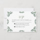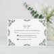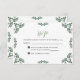 This Mexican Talavera Green Floral Minimalist Wedding RSVP Card design features a minimalist approach with delicate, symmetrical green floral motifs placed in each corner and along the edges. The small, leaf-like shapes create a sense of movement while maintaining an airy, open space in the center, allowing for ample text placement. The simplicity and elegance of the pattern evoke traditional Talavera tiles, giving the design a classic Mexican artisanal feel.