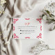 This Mexican Talavera Orange Floral Minimalist Wedding RSVP Card design features a minimalist approach with delicate, symmetrical orange floral motifs placed in each corner and along the edges. The small, leaf-like shapes create a sense of movement while maintaining an airy, open space in the center, allowing for ample text placement. The simplicity and elegance of the pattern evoke traditional Talavera tiles, giving the design a classic Mexican artisanal feel.