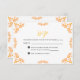 This Mexican Talavera Yellow Floral Minimalist Wedding RSVP Card design features a minimalist approach with delicate, symmetrical orange yellow motifs placed in each corner and along the edges. The small, leaf-like shapes create a sense of movement while maintaining an airy, open space in the center, allowing for ample text placement. The simplicity and elegance of the pattern evoke traditional Talavera tiles, giving the design a classic Mexican artisanal feel.