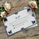 Den här mexikanska blå Blommigten Otomi Simple Fiesta Bröllop OSA Card har en enkel utformning och elegant gräns, med mörk blått blommigt och fågelinslag placerat delikat i varje hörn. Centrumområdet lämnas tomt och ramas av en tunn blå linje som ger en ren och minimalistisk bakgrund för texten. Kombinationen av fåglar och blommor, tillsammans med den fastspända användan färg, ge, är ett sofistikerat men traditionellt utseende, inspirerat av mexikanska folkmotiv.