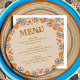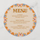 Mexikansk blommigt-meny med fiesta folkkonstblommor i den jorda färg-paletten med champagnebeige brun blå rosa orange och gult. Distinktiv utformning med western typografi och handskrivet skript för elegant. Mallen är konfigurerad så att du kan lägga till kursrubriker och matartiklar. Bläddra i min mexikanska Blommigt för att hitta matchande objekt eller meddela mig om du vill skapa de mallar du behöver.