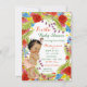 Mexikansk fiesta-inbjudan till baby shower med söt liten flicka på en vacker grön, orange, röd och blå mexikansk fiesta-bakgrund. Dessa färgglada flickors fiesta baby shower-inbjudningar kan enkelt anpassas för ditt evenemang genom att helt enkelt lägga till dina detaljer i typsnittsstil och färg, formulering och layout som du väljer. Du kan också ändra bakgrundsfärgen.