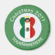 Rund magnet för juldekoration med en ängel iklädd Mexikos flagga. Ängeln finns inuti en vit fraktal av snurriga fyrkanter med en bakgrund av gröna snurriga fyrkanter. Lägg till din egen text om du vill. Personliggör med ett namn och anpassa med året. Rolig strumplåda. Hedra din mexikanska härkomst under höstlovet.