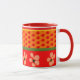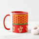 Klar och starka färger i röda och gröna mönster och trim för att skapa en glad mexikansk mugg.
