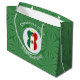 En stor presentväska har en ängel som bär Mexikos flagga för dekorering av helgdag eller julklappsdekoration. Den mexikanska Flagga julängel finns inuti en vit, cirkelformad rektangel. Bakgrunden är en grönt som består av fyrkanter. Lägg till din egen text eller anpassa den med namn och året. Utformningsprogram på båda sidor om presentsäcken. Lägg till en trevlig beröring i dina helgdag genom att dela ditt arv.