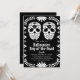 Denna unika Día de los Muertos-design fångar viktiga aspekter av denna mexikanska fest och skulle vara ett bra tema för en Halloween-fest. En sockerskalle är en tradition som har en framträdande plats under Día de los Muertos-firandet som börjar i slutet av oktober till början av november, så detta inbjudningskort är perfekt för vilken fest du än har under den tiden.