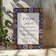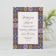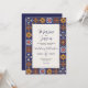 Denna mexikanska Talavera-Majolika färgrika klassiska bröllopsinbjudan har en livfull ram som består av färgglada kakel motiv, varje fyrkant är rikt dekorerad med traditionella blommiga och geometriska mönster i varma nyanser av blå, röd, gul och orange. Kegelarrangemanget omger en lätt texturerad krämfärgad mittdel, som ger en klassisk men ändå livlig kontrast som är idealisk för festliga eller kulturella tillfällen. Inspirerad av Majolika eller mexikanska Talavera-kakelstenar, ger designen en varm, handgjord estetik med symmetrisk elegans.