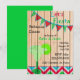 Rolig bröllopsrepetition middagsinbjudan gjord i en färgrik mexikansk tema. Grafik av en rå träpanel bakgrund, med en rosa, turkos och grön flaggbanner och färgrik grafisk text som läser Låt oss festa, överst, ett matchande sicksack-mönster, längst ner, och en läcker ser ut margarita-dryck, dekorerar denna festliga inbjudan. Svart och grön text är helt anpassningsbar och redo att anpassas för din händelse.
