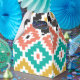 Coola trendig färglös modern stamskrift Ikat mönster med pixel zigzag-diamanter i det traditionella mexikanska färgen av blått, rosa, gult och svart. Anpassa den genom att lägga till foton och/eller text för att skapa din egen unika design!