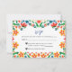 Den här designen av den mexikanska Blommigten Colorful Botanical Flowers Bröllop OSA Card har en levande blommigt gräns som består av fet orange, rött, gult och blåa blommor som är sammanflätad med livliga löv och stammar av grönt. Den symmetriska layouten ramar är ett centralt tomt utrymme, perfekt för text, och ge den övergripande sammansättningen är ett strukturerat, festligt utseende. Den platta, rena illustrationen stil och det ljusa, mättade färg framkallar en glad, konstinspirerad estetik som är lämplig för att fira tillfälle som bröllop.
