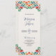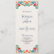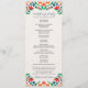 Den här Bröllopsprogrammet med den mexikanska Blommigten Colorful Botanical Flowers visar en symmetrisk blommigt gräns mot en lätt, subtil texturerad bakgrund som skapar en fetstil och elegant kontrast. Den översta och grund kant har vibrerande gult, rött, orange och blåa blommor med lush grönt löv, som accentueras av små röda bär för extra synligt intresse. Det breda, tomma centralutrymmet ger en ren perfekt för att lägga till text- eller händelseinformation samtidigt som den ornerade blommigten ram behålls som ett slående dekorativt inslag.