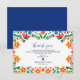 Den här mexikanska Blommigten Colorful Botanical Flowers Bröllop Tack. Ditt kort har en levande blommigt gräns som består av fet orange, rött, gult och blåa blommor som är sammanflätad med livliga löv och stammar av grönt. Den symmetriska layouten ramar är ett centralt tomt utrymme, perfekt för text, och ge den övergripande sammansättningen är ett strukturerat, festligt utseende. Den platta, rena illustrationen stil och det ljusa, mättade färg framkallar en glad, konstinspirerad estetik som är lämplig för att fira tillfälle som bröllop.