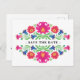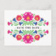 En vacker mexikansk blommigt i stil sparar vykortet för datum. Denna konstruktion ingår i "Mexikanska Blommigten Bröllop Samling". Se de andra artiklarna i den här samlingen för en perfekt samordnad inbjudan.