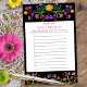 Photo Game Response lakan med en mexikansk Fiesta Flower-designad personlig till kostym för ditt evenemang, till exempel bröllop eller par dusch. Färgstark blommigt med stil-blommor i rosa lila röd och gult. Designad för bröllop eller möhippa fotospel "var de fanns" eller "vart de tog vägen" med numrerat linjer för att dina gäster ska få upp till 12 svar.