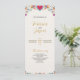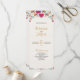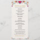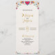 Den här utformningen av det botaniska Bröllopsprogrammet Fiesta Colorful Flowers har en lodrät med en texturerad, benvit bakgrund som är inramad av vibranta folkkonsmotiv överst och grund. I centrum flankerar två färgstarka, symmetriska fåglar ett stort flammande rosa hjärta med en tealformad gräns, omgiven av blommor, löv och snurrande dekorativa accenter. Grund är försett med en levande blommigt arrangemanga och paisleyliknande former som skapar ett livligt och festligt ram samtidigt som man lämnar gott om utrymme i mitten för text eller bilder.