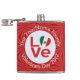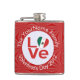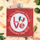 Höftkolv som visar den mexikanska FLAGGA KÄRLEK. Ord KÄRLEK finns i rött brev i en vit, rektangulär cirkel av fyrkantiga fyrkanter. Cirkeln sitter på en röd, grå bakgrund av fyrkanter. Perfekt Valentines daggåva till honom, men kan anpassas till alla tillfälle. Njut av Mexikos flagga.
