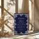 Den här eleganten för inbjudan till Mexikanska marinblått Blommigt Classic Elegant bröllop har en ornerad blommigt gräns i skarp vit yta mot en djup marinblå bakgrund som skapar en slående och sofistikerad kontrast. De symmetriska blommorna i varje hörn och längs sidorna liknar delikata pappra eller snöre-motiv och framkallar ett klassiskt och tidlöst estetiskt. Konstruktionen är perfekt för formellt tillfälle som bröllop eller storskaliga arrangemang och ger en känsla av förfining och underskattad lyx.
