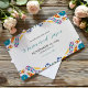Denna mexikanska Nuestra Boda Flowers botaniska Bröllop spara datum-design visar en rik och vibrerande blommigt arrangemang runt kant, med fetstilt färg som rött, orange, blått, lila och gult som skapar en känsla av glädje och glädje. Blommorna kombineras med bladfärdigt mönster och små, detaljerade förskönanden, ge utformningen av ett levande och texturerat utseende. Balansen mellan det ljusa, kontrasterande färg och den känsliga, symmetriska arrangemanga gör detta till ett öga-fångstalternativ för en högtidlig bröllop-stationär, särskilt en med ett traditionellt eller folklodiskt tema.