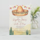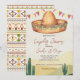 Mexikansk fiesta par duschinbjudan. Sombrero hat, firande flaggor, ökenbakgrund, modernt skript.