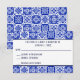 Blå och vita spanska/mexikanska plattor på toppen och botten av kortet och på baksidan.