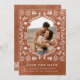 Fira kärlek med det här sterila terracotta mexikantematerade bröllop spara datum-kortet med en kompakt blommigt. Perfekt för ett boho-inspirerat bröllop. Matchande objekt i vår butik Cava Party-design.