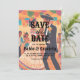 Fira kärlek med den här eleganten och spara datumkortet! Det här kortet har en vacker utformning av blommigten inspirerad av mexikanska papelpiado, och är perfekt för ett målbröllop eller ett fiestatemerat firande. Den svarta bakgrunden skapar ett sofistikerat och modernt utseende, medan det pulserande färg och de invecklade detaljerna tillför en aning traditionell charm.
