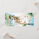 Mexiko Destination Beach Bröllop Boardingpass Biljett Guld Plan Spara datum med hjärta och flygplansikon med tropiska blad