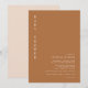 Den här inbjudan till babyduschen innehåller en bränd orange och en beige färgning parad med en modern minimalistisk layout. Det är perfektens inbjudan till din bohemiska öken- eller jordtonshändelse.