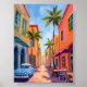Miami Beach Färgglad Gatu Scen Poster