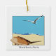 Ornament med en tvådimensionell Horseshoe Crab med havsgull bild som flyger över stranden med vågar. Datum Anpassade på baksidan. Miami Beach, Florida på framsidan i Baskerville Font