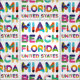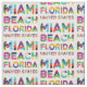 En mönster av den unika, färgstarka dekorativa texten Miami Beach, Florida, Förenade Stater. Snygg biet av tyg åt vem som helst. Om det behövs användor du alternativet "Anpassa den" om du vill placera bilden på en produkt eller ändra färg på bakgrunden. Njut, köp en, ha roligt och vara lycklig. #peace #kärlek #GoodVibes #färg #text #typografi ##craft #craft