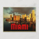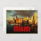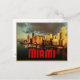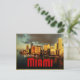 Den här dramatiska scenen erbjuder Miami, FL-skylinen på natten med ett vykort för vintage.