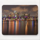 Den härliga natten fotograferar av den Miami horisonten med trevliga reflexioner på vatten.