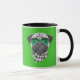 Denna design presenterar ett porträtt av mops in med solglasögon och en svartvit rutig scarf.