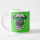 Den här designen har en porträtt av pug in med solglasögon och en svart och vit schackerad scarf.