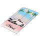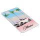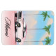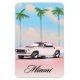 Miami Rosa Sunset-reseaffisch med en retro amerikan muskelbil mot en kvällsolnedgång.