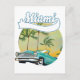 Miami Sunset-logotyp med en klassisk bil i vintage-stil i skymningen.