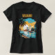 Solnedgång över Miami, Florida, segelbåt på vatten och stadens vattenfront bakom.