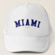 Kontrollera ut denna Miami hatt! Är du från Miami, Florida? Har du en vän eller en familjemedlem som älskar Miami, Florida? Om så, är denna "baner" hatt exakt gåvan som du söker efter! Designen presenterar "Miami" i välvd marinbokstäver i klassikerhögskolastilsorten.