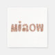 "Mimaow" i ord ritas med rödbruna oljefastor på vit bakgrund. Det är en rolig utskrift för ditt hem.